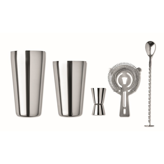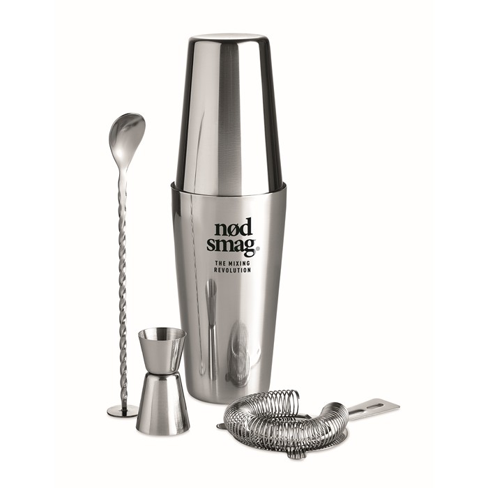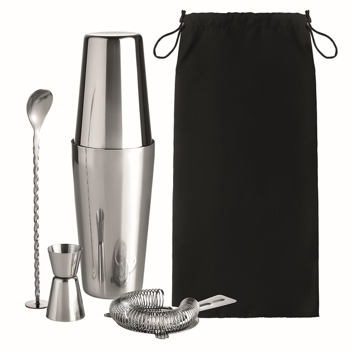 Prepara bebidas de estilo profesional en tu negocio de restauración, tus fiestas de empresa o incluso en el hogar con este completo set de cóctel equipado con 6 accesorios. Fabricado en acero inoxidable cuenta con una coctelera (600 + 450 ml), una taza medidora (30 ml), una cuchara, una herramienta para majar y un colador. A su vez, el producto se presenta en una caja de regalo e incluye una bolsa de non-woven para almacenar las piezas. Un bestseller que dispone de servicio de entrega exprés. Personalízalo con tu logo y sorprende a clientes y empleados con un regalo original que transmite elegancia y un toque de profesionalidad.