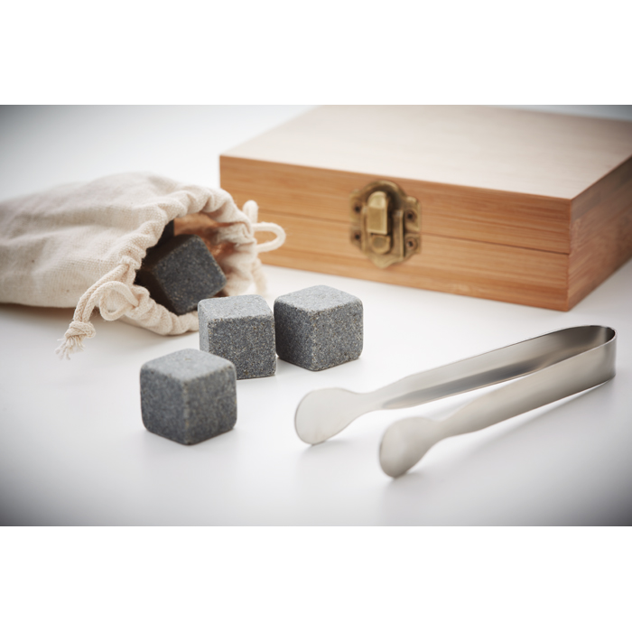 Conjunto de 9 cubitos de hielo de piedra en estuche de bambú y pinzas