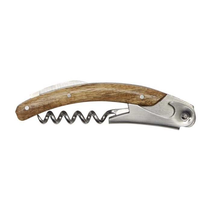 - Incluye sacacorchos y cuchillo de hoja retráctil