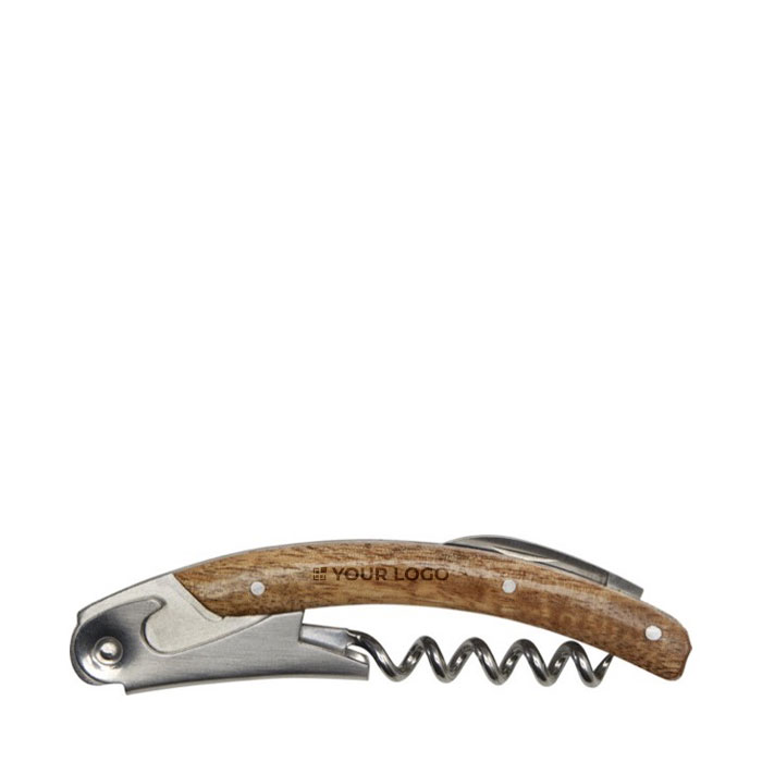 Un set de portabotellas de madera de acacia con utensilio es un obsequio sofisticado para los amantes del vino. Incluye un abrebotellas de camarero con sacacorchos y un cuchillo de hoja retráctil, lo que lo hace práctico y versátil. Puedes entregarlo en eventos especiales o como un regalo corporativo que destaque por su elegancia. Este soporte, que también sirve para botellas de vino, eleva la experiencia de servir vino, asociando tu marca con momentos de disfrute y buen gusto. Tu logotipo, discretamente grabado, refuerza la imagen de una empresa que valora la calidad y la hospitalidad, creando una conexión duradera y de prestigio con tus clientes.