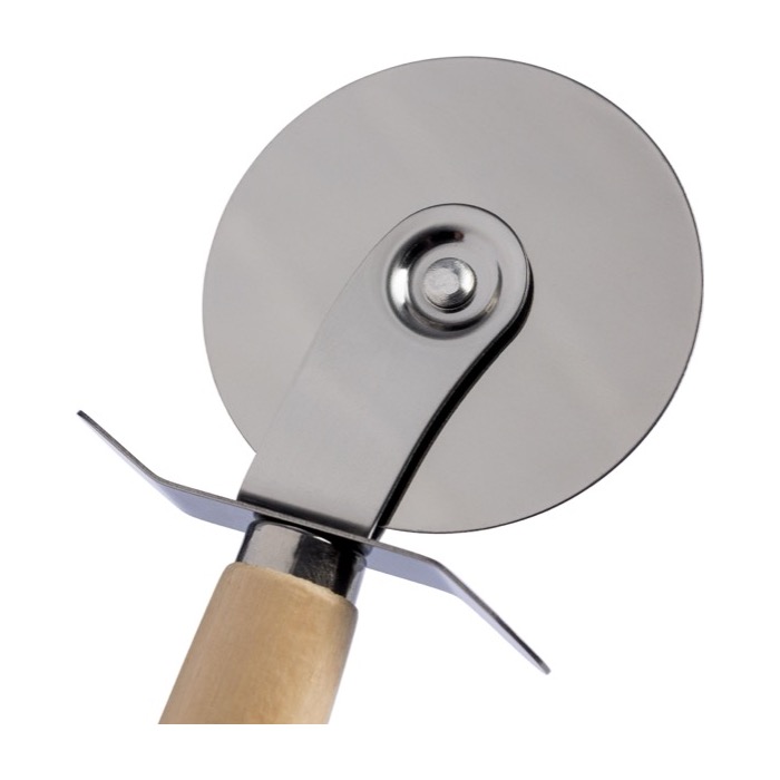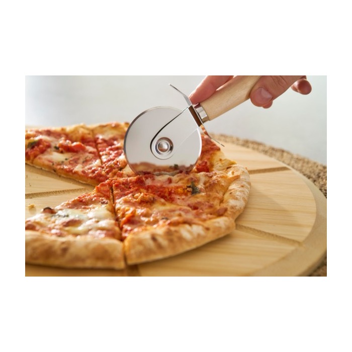 Cortapizza de madera y acero inoxidable con el logo grabado Bamboo