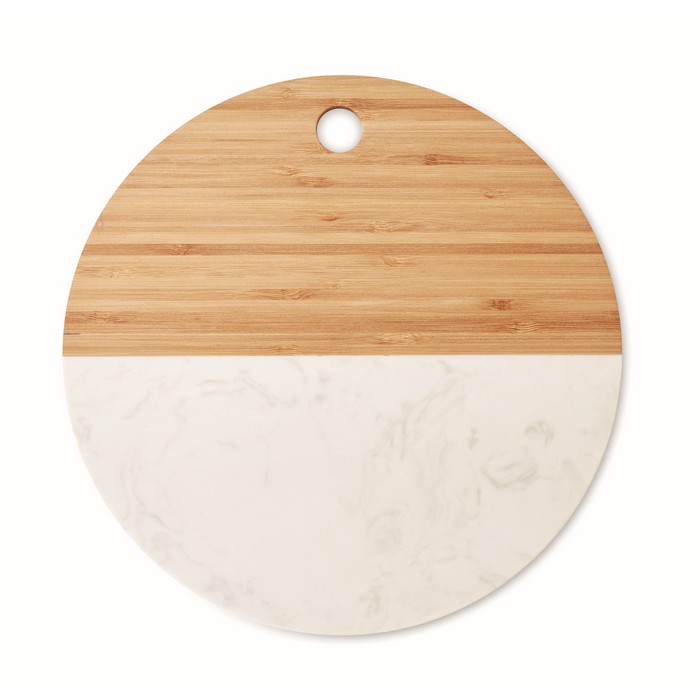 Tablas para servir personalizadas circulares de mármol y bambú Gourmet
