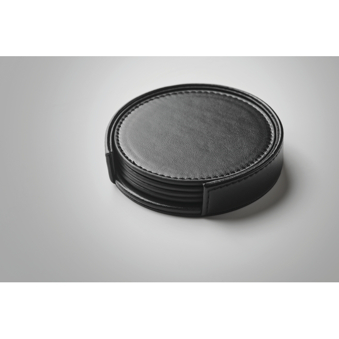 Set de 4 posavasos y un porta posavasos a juego de cuero sintético