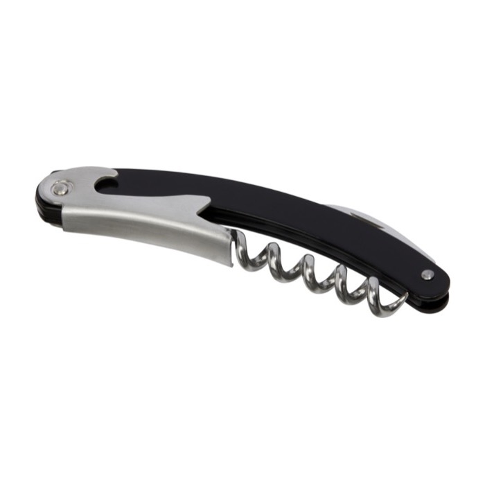 Ofrece un sacacorchos elegante que combina diseño refinado y utilidad. Con su cortacápsulas integrado y abrebotellas, este utensilio facilita la apertura de botellas de vino de forma precisa. Su construcción en acero inoxidable asegura durabilidad y resistencia. Tu marca, grabada con distinción, se asocia a momentos de disfrute y profesionalidad. Es un detalle práctico para eventos gastronómicos, catas o como regalo a clientes, asegurando que tu empresa sea recordada en cada celebración o reunión donde se valore la atención al detalle y la calidad.