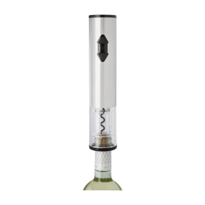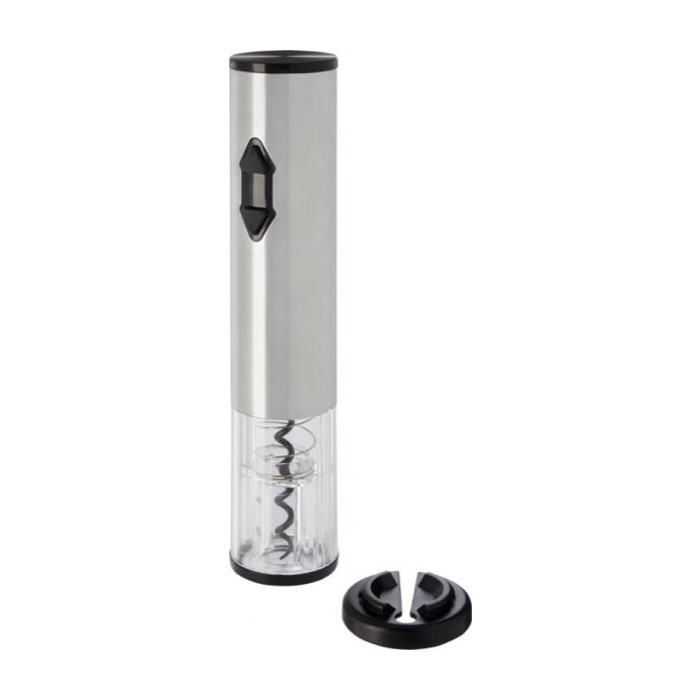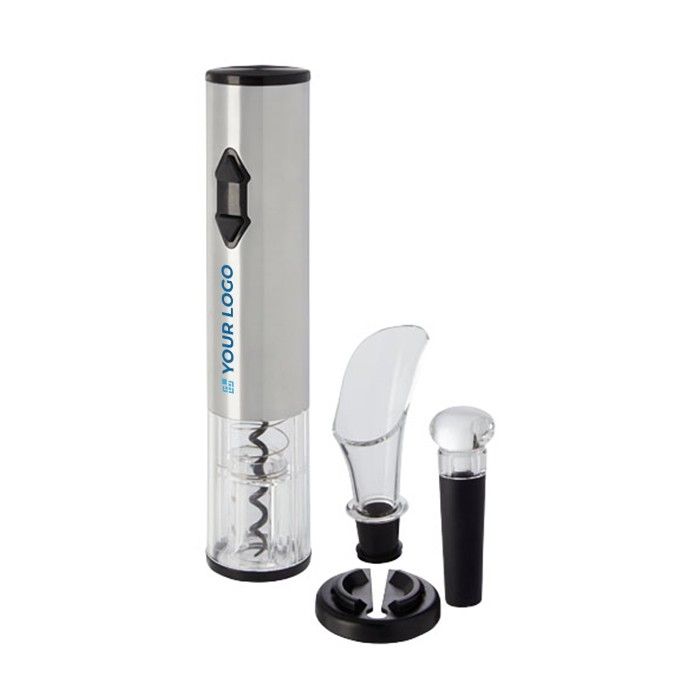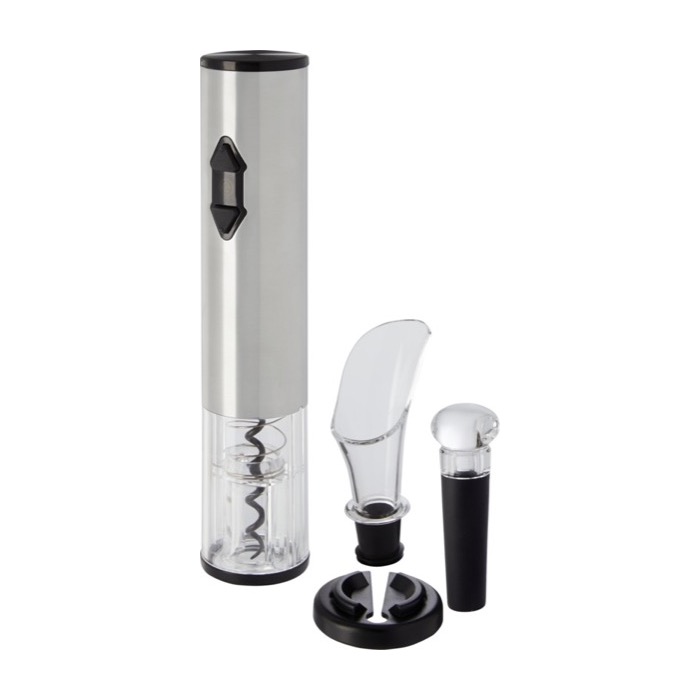 Abridor eléctrico con accesorios para botellas de vino plateado