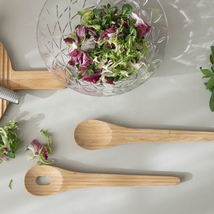 Set de 2 utensilios para servir ensalada hechos de bambú