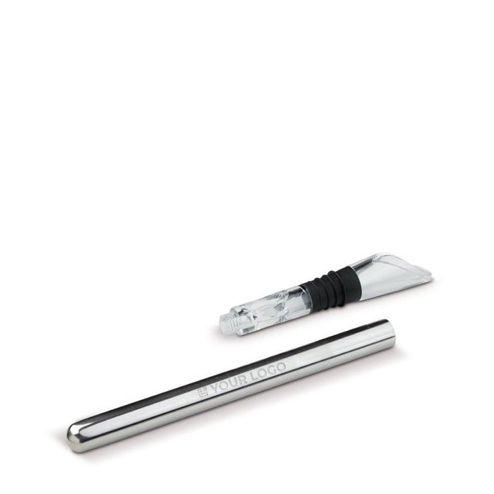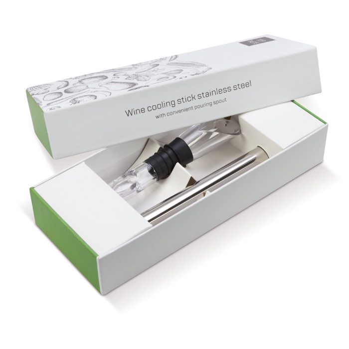 Ofrece una vara de acero inoxidable con función de enfriador de vino para que tus clientes mantengan sus botellas a la temperatura adecuada. Este accesorio innovador es un regalo distintivo que demuestra tu atención por los detalles y el disfrute. Solo debes sacarla del congelador, introducirla en la botella de vino y servirlo frío a través de su canalón. Al facilitar una experiencia de consumo superior, tu marca se asocia a la calidad y la sofisticación. Se entrega en caja de regalo, reforzando tu presencia en reuniones sociales o cenas.