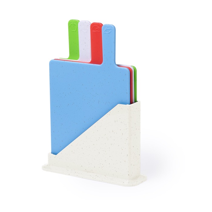 Un set de cuatro tablas de cortar, cada una identificada para distintos tipos de alimentos y con soporte, proyecta una imagen de profesionalidad y cuidado. Fabricadas en resistente PP, estas tablas garantizan durabilidad. Al personalizar este conjunto, tu empresa promueve la higiene y la organización en cocinas corporativas o durante cursos de cocina. Los dibujos grabados y los diferentes colores facilitan la identificación, asegurando prácticas culinarias seguras. Presentado en caja de diseño kraft, este obsequio demuestra tu compromiso con la calidad, reforzando la percepción de tu marca como proveedora de soluciones pensadas.