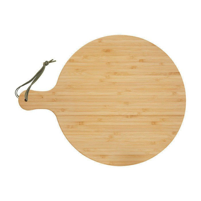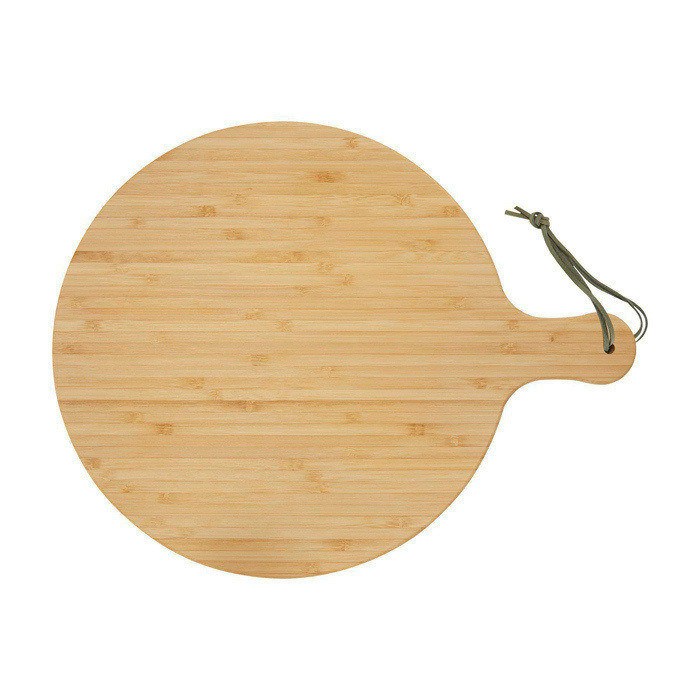 - Tabla de cortar de bambú con diseño redondo y mango ergonómico de 8 cm