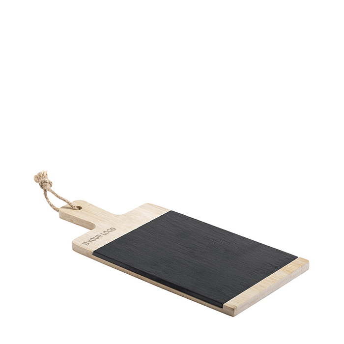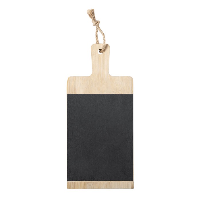 Una tabla corporativa de cortar de bambú y pizarra extraíble te ofrece una solución innovadora para presentar y servir. La pizarra extraíble es perfecta para quesos o aperitivos, permitiendo una presentación elegante y diferenciada. El asa y el cordón facilitan su manejo y almacenamiento. Al elegir este diseño distintivo, tu marca se posiciona a la vanguardia, asociándose con la creatividad en el sector gastronómico. Fabricada en materiales de suave y resistente acabado pulido, es ideal para corte y presentación. Presentada en atractiva caja, deja una impresión sofisticada y memorable.