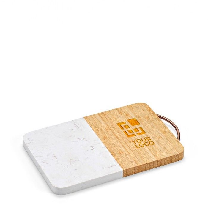 Una tabla de corte que combina bambú y mármol, con unas generosas dimensiones de 20 x 30 x 2 cm, ofrece un obsequio de gran impacto visual. Al personalizarla, tu marca se asocia con la sofisticación y la creatividad en la gastronomía. Su diseño cuidado, con asa superior, realza la presentación de cualquier plato, desde aperitivos hasta postres. Proyectas una imagen de empresa que valora la elegancia y la calidad. Además, viene embalada en caja de cartón individual, lo que refuerza su presentación profesional.
