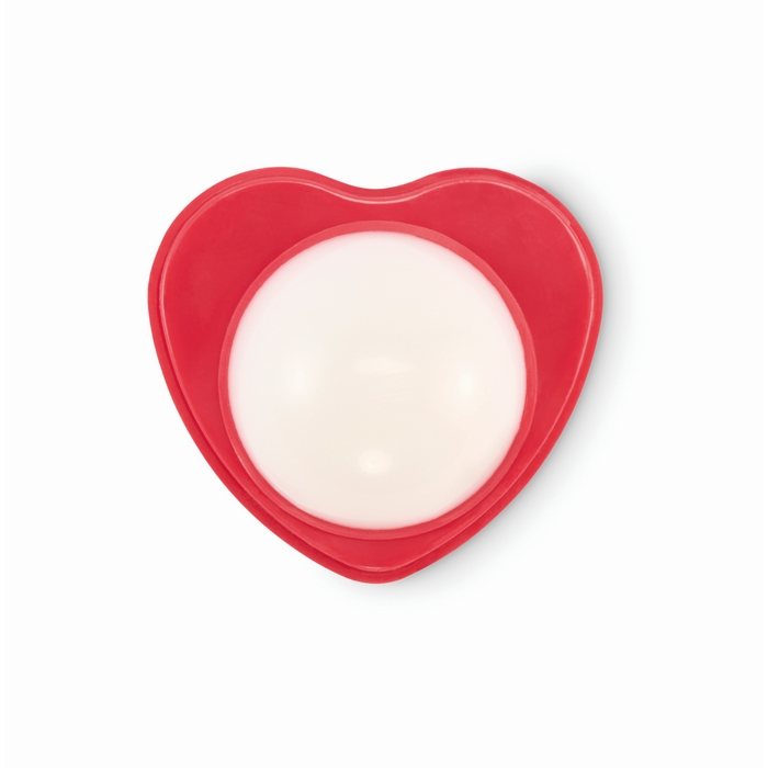 Bálsamo labial vegano en caja de PP con forma de corazón, pensado para un uso diario y cómodo. Incluye FPS10 para ayudar a proteger los labios en exteriores, y aporta un sabor a vainilla agradable y neutro. El formato compacto cabe bien en bolsos, neceseres o bolsillos, y la caja facilita el manejo en eventos o acciones de reparto. Adecuado para campañas de bienvenida, kits corporativos o ferias.