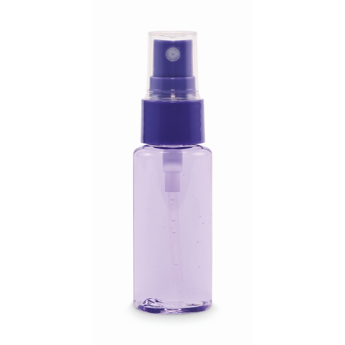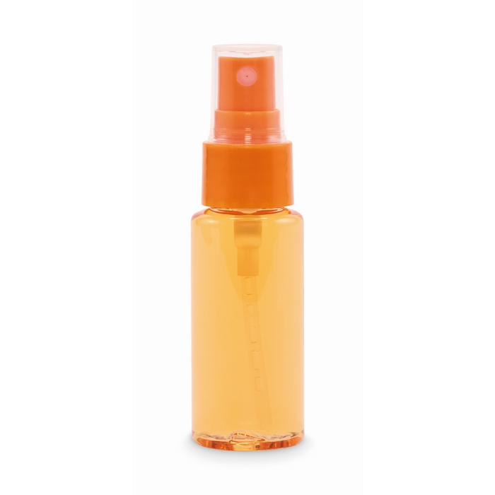 Pulverizador corporal en frasco PET de 30 ml con pulsador y tapa de PP. Formato compacto para llevar en bolso, neceser o viajes de trabajo, con aplicación cómoda y controlada. Incluye una mezcla de fragancias de ciruela y casis, con salida de jazmín y orquídea brasileña, y fondo de maderas cálidas. La tapa ayuda a proteger el pulsador y evita activaciones accidentales. Opción adecuada para packs de bienvenida, eventos o acciones de fidelización.