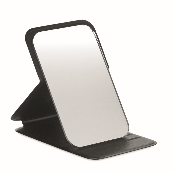 Espejo compacto de PU con estuche plegable, pensado para llevar en bolso, neceser o kit de viaje. El formato protege la superficie cuando no se usa y ayuda a mantenerlo limpio en el día a día. Por su tamaño y peso reducido, resulta práctico para eventos, ferias o desplazamientos del equipo. La superficie se limpia con facilidad y el acabado del estuche ofrece una presentación cuidada. Puede incluirse como detalle en packs corporativos o como obsequio en acciones de bienvenida.