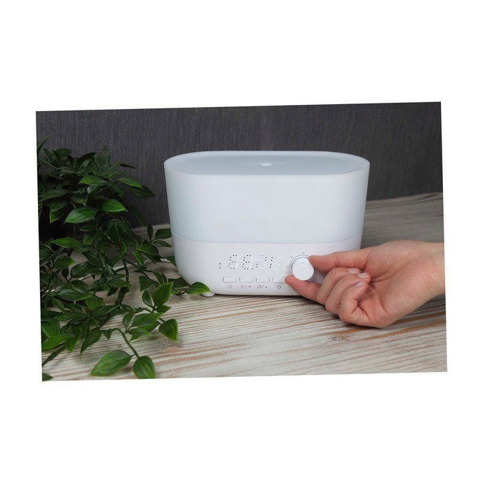 - Humidificador aromático 4 en 1 con reloj, alarma y luz LED