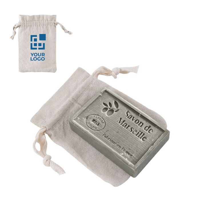 Jabón de Marsella fabricado en Francia con aceites vegetales y de oliva. Este producto destaca por su composición natural, ideal para el cuidado de la piel. La presentación incluye una bolsa de algodón, lo que facilita su almacenamiento y transporte. Hecho en Europa, garantiza calidad y autenticidad. Su fórmula suave es adecuada para todo tipo de piel, ofreciendo una experiencia de limpieza efectiva y delicada. Perfecto para empresas que buscan ofrecer productos de bienestar a sus empleados o como parte de un kit de bienvenida para clientes.