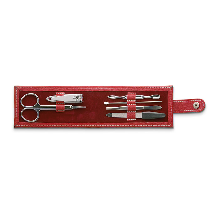 - Set de manicura con estuche de cuero sintético rectangular y 6 piezas