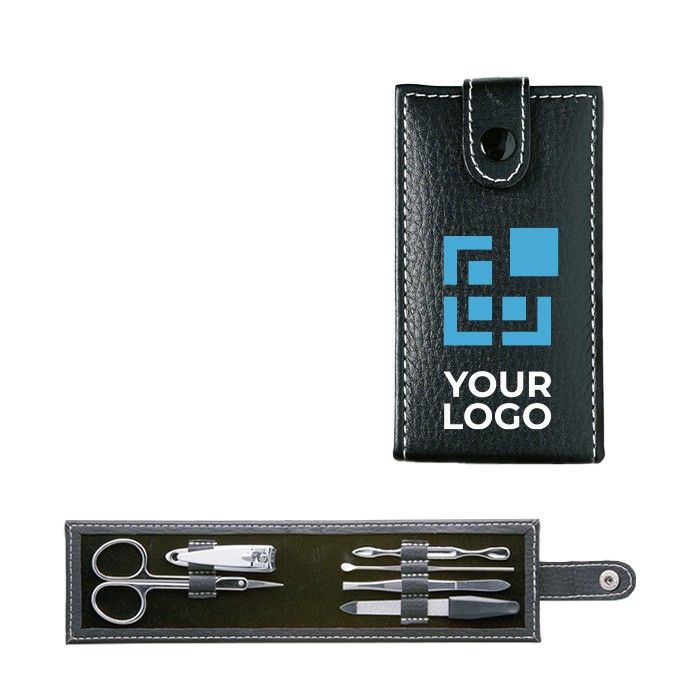 Un kit para uñas de alta calidad comunica una imagen de cuidado y atención al detalle por parte de tu empresa. Al regalarlo, proporcionas un artículo duradero y esencial para el mantenimiento personal, útil tanto en la oficina como en viajes de negocios. Este set de manicura incluye 6 piezas de acero inoxidable, garantizando resistencia y durabilidad. Su estuche de cuero sintético rectangular añade un toque de elegancia y profesionalismo. Este tipo de regalo posiciona tu marca dentro de un ámbito de sofisticación, siendo recordado cada vez que se utiliza por su practicidad y presentación ejecutiva, elevando tu visibilidad.
