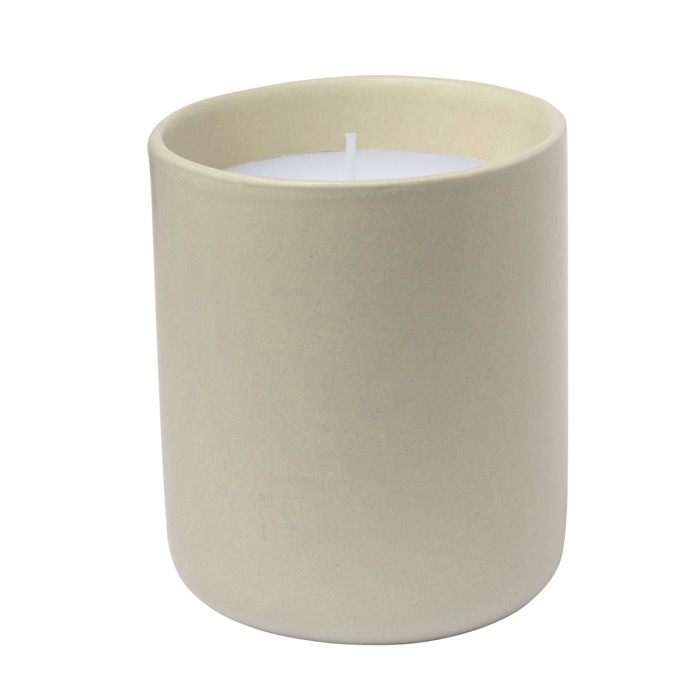 - Vela aromática en tarro de cerámica con aroma a vainilla