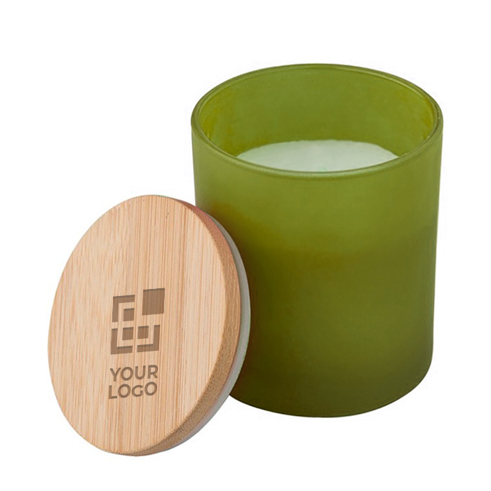 Vela de cristal pintado con tapa de bambú para empresas Levanti