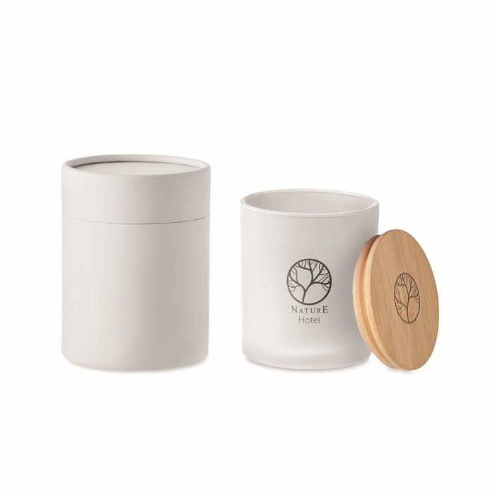 Vela de cristal pintado con tapa de bambú para empresas Levanti