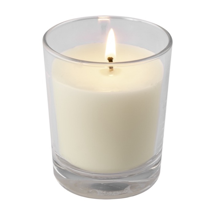 Vela aromática de vainilla en elegante recipiente de cristal para personalizar