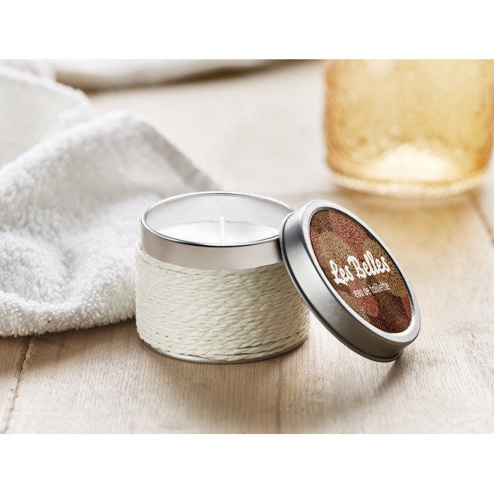 Vela de distinto aroma con etiqueta de cartón personalizable