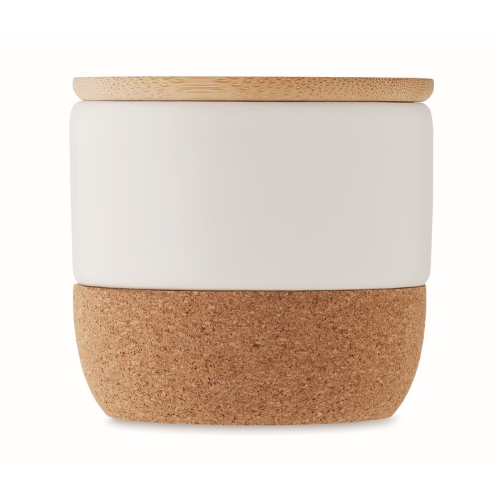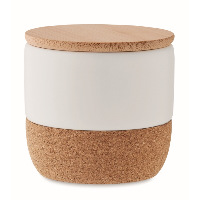 - Tarro de gres con tapa de bambú y base de corcho