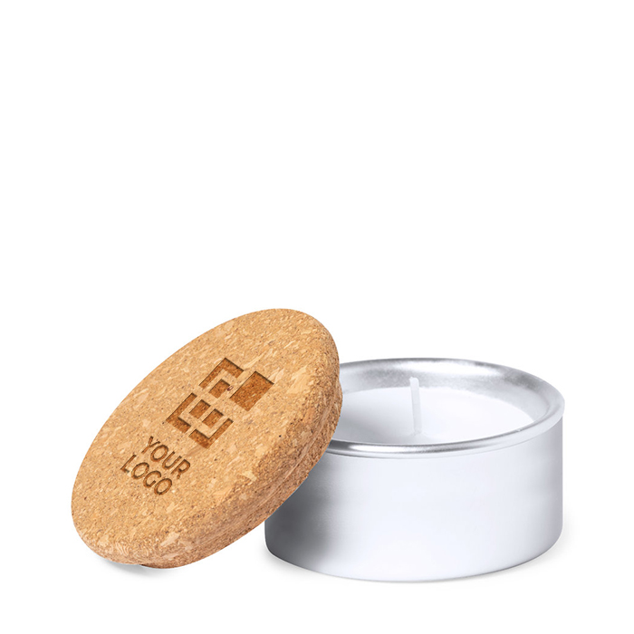 Vela aromática en tarro de aluminio con tapón de corcho para personalizar