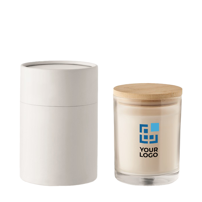 Una vela alargada en recipiente de vidrio, con el clásico aroma a vainilla, te permite proyectar una imagen de elegancia y confort. Con un diámetro de 8 cm, su tamaño es ideal para cualquier espacio. Su presentación en una caja de tubo de papel garantiza su protección y añade un toque sofisticado, mientras que la tapa de bambú complementa su diseño natural. Este obsequio es versátil, encajando tanto en espacios de oficina como en hogares, creando un ambiente acogedor. Al ofrecer un detalle que inspira bienestar y calma, fortaleces la percepción de tu marca y la conexión con tus destinatarios.
