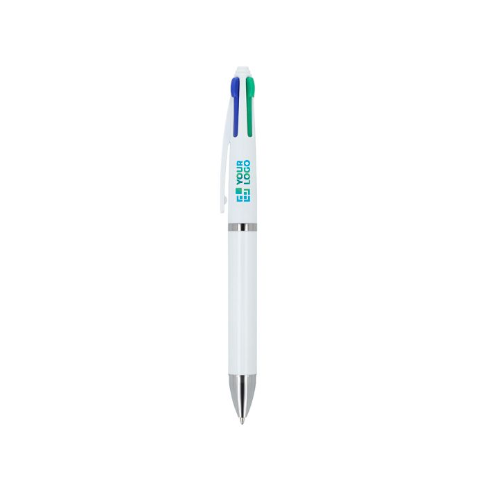 Bolígrafo de plástico con diseño clásico y sistema de 4 colores de escritura. Permite alternar entre tinta negra, azul, roja y verde desde un solo cuerpo, agilizando anotaciones, correcciones y marcados sin cambiar de bolígrafo. El mecanismo de selección es rápido y cómodo para el uso diario en oficina, recepción o atención al cliente. Aporta una solución práctica para equipos que trabajan con documentos, reuniones y planificación. Recomendado para acciones de merchandising en ferias, congresos y formaciones internas.