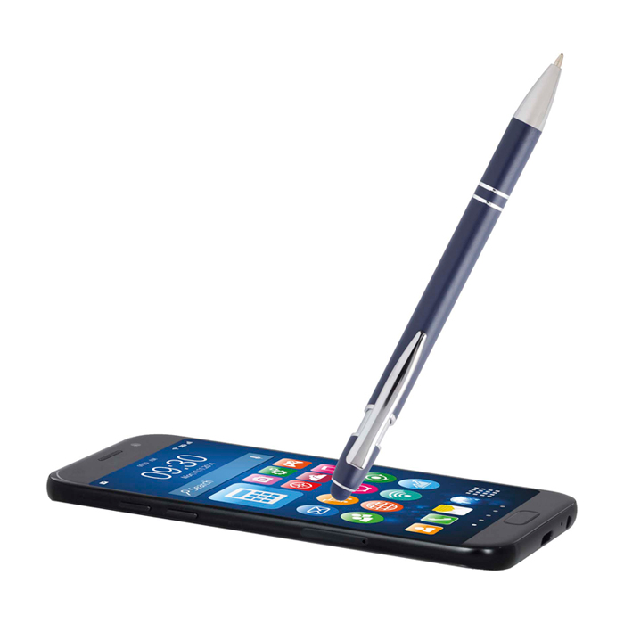 Bolígrafo plateado con lápiz táctil y tinta negra de larga duración