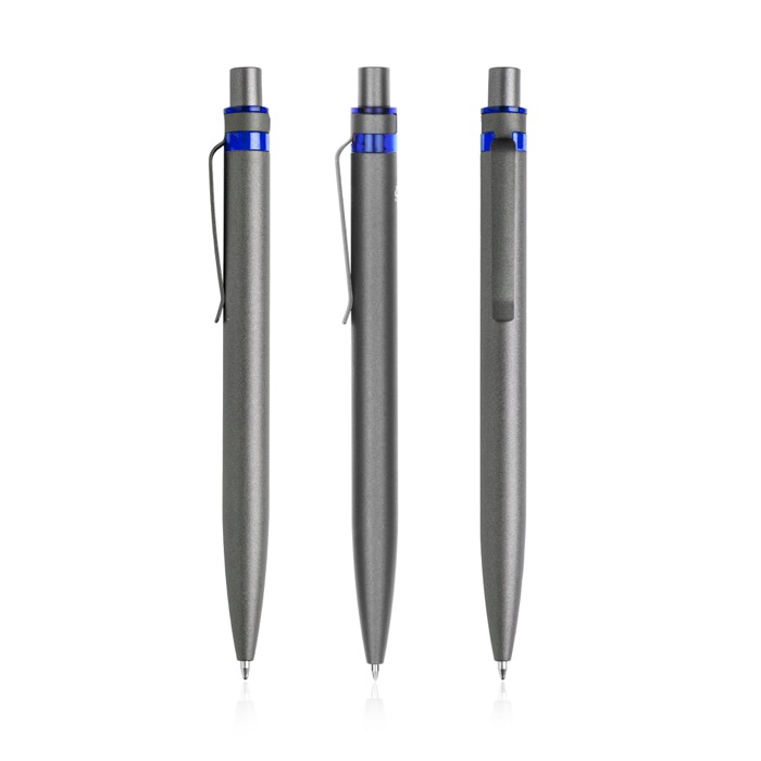Bolígrafo de aluminio reciclado con detalle a color tinta azul
