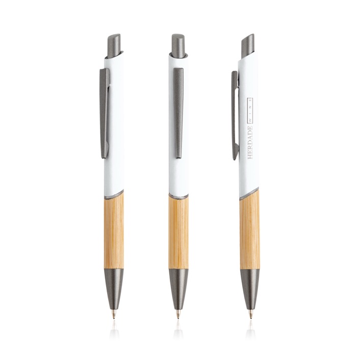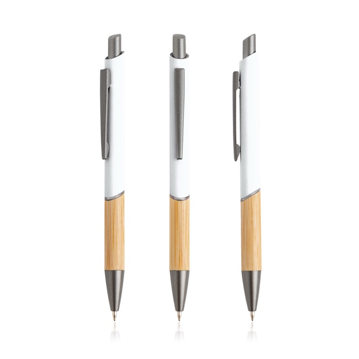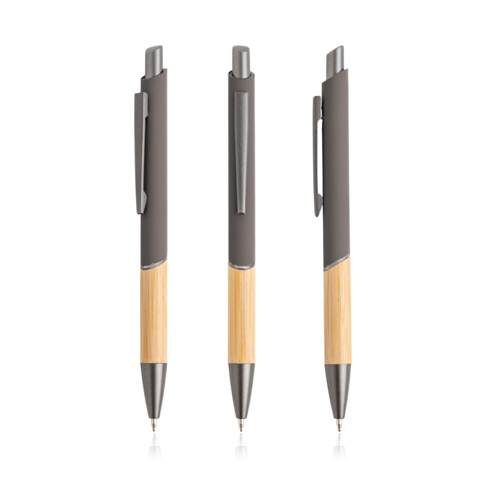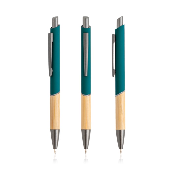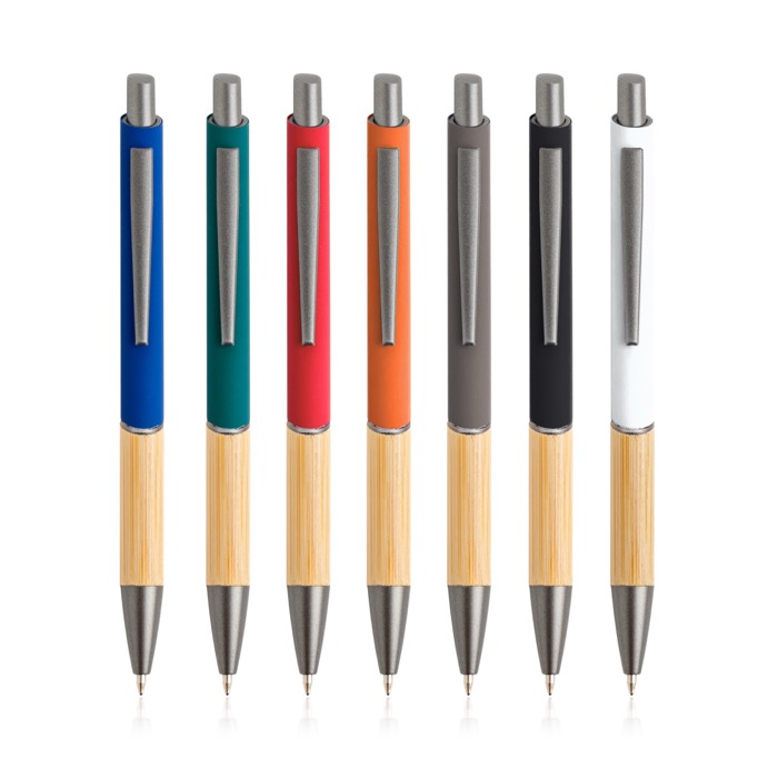 Bolígrafo fabricado en aluminio reciclado. Este bolígrafo combina un diseño moderno con un enfoque sostenible, utilizando metal reciclado y un tacto de goma que integra la naturaleza del bambú. La tinta azul proporciona trazos suaves y consistentes, ideales para cualquier entorno de trabajo. Además, el servicio Express asegura una entrega rápida, adaptándose a las necesidades urgentes de su empresa. Perfecto para empresas que buscan productos de oficina que reflejen un compromiso con la sostenibilidad, este bolígrafo puede ser una excelente opción para regalos corporativos o eventos de marketing.