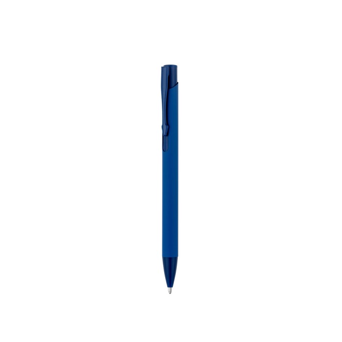 Bolígrafo de aluminio reciclado con acabado de goma tinta azul