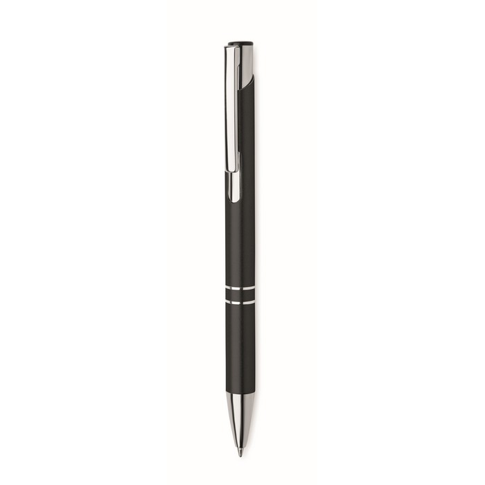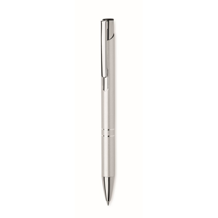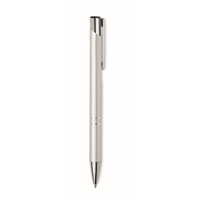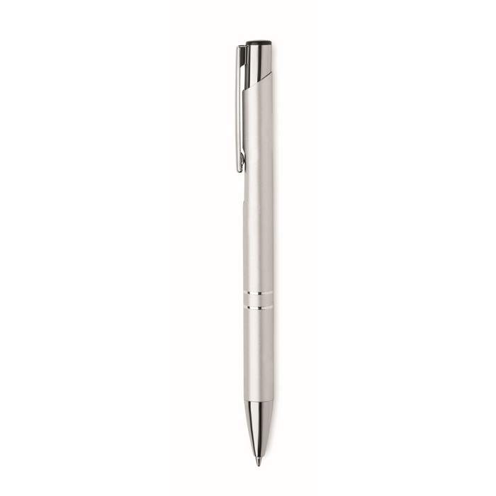 Este bolígrafo con pulsador combina un diseño clásico, popular entre nuestros clientes, y el compromiso con el medio ambiente. Fabricado en aluminio reciclado, es una opción más sostenible. Su cuerpo resistente permite hacer publicidad durante más tiempo. La tinta azul es ideal para uso diario en oficina, escuela o eventos. Gracias a su diseño elegante, es perfecto como regalo promocional o artículo corporativo. Disponible con servicio express para entregas rápidas. Una forma sencilla de cuidar el planeta mientras aportas a tu equipo lo que necesitan o mientras te promocionas en una feria.