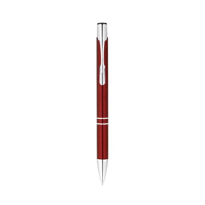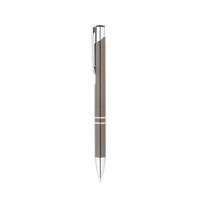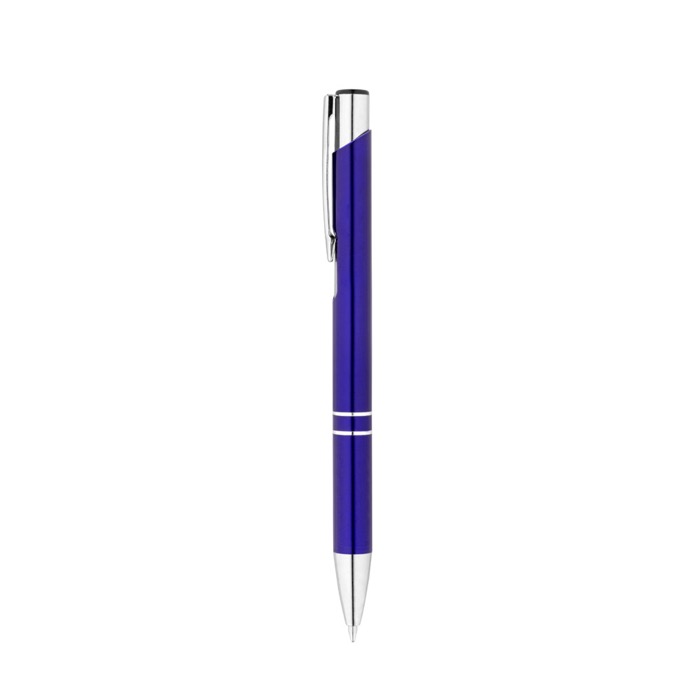 Este bolígrafo con pulsador combina un diseño clásico, popular entre nuestros clientes, y el compromiso con el medio ambiente. Fabricado en aluminio reciclado, es una opción más sostenible. Su cuerpo resistente permite hacer publicidad durante más tiempo. La tinta azul es ideal para uso diario en oficina, escuela o eventos. Gracias a su diseño elegante, es perfecto como regalo promocional o artículo corporativo. Una forma sencilla de cuidar el planeta mientras aportas a tu equipo lo que necesitan o mientras te promocionas en una feria.