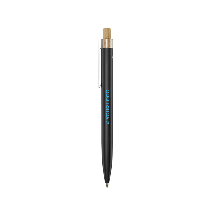Bolígrafo fabricado con aluminio reciclado, diseñado para reducir residuos y conservar recursos naturales, contribuyendo así a disminuir las emisiones de gases de efecto invernadero. El pulsador, hecho de bambú, añade un toque natural y elegante. La tinta azul de alta calidad garantiza una escritura fluida y duradera, con una longitud de escritura de 800 metros y una punta de 1,00 mm que ofrece precisión en cada trazo. Ideal para empresas que buscan soluciones sostenibles, este bolígrafo es perfecto para reuniones, conferencias o como parte de un kit de bienvenida corporativo. Además, cuenta con un servicio Express para satisfacer necesidades urgentes.