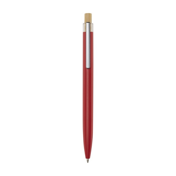 - Bolígrafo reciclado de aluminio con pulsador de bambú