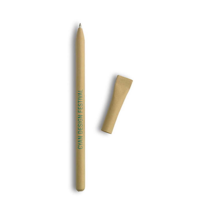 Bolígrafo con tapón hecho 100% de cartón reciclado. La tinta azul garantiza una escritura clara y profesional, ideal para cualquier entorno de trabajo. Fabricado en papel, este bolígrafo es una opción ecológica que refleja un compromiso con la sostenibilidad. El servicio Express asegura una entrega rápida, perfecta para cumplir con plazos ajustados. Su diseño sencillo y funcional lo convierte en una herramienta práctica para el día a día en la oficina. Úsalo como un artículo de merchandising económico y personalizado en ferias y eventos, destacando el compromiso de tu empresa con el medio ambiente.