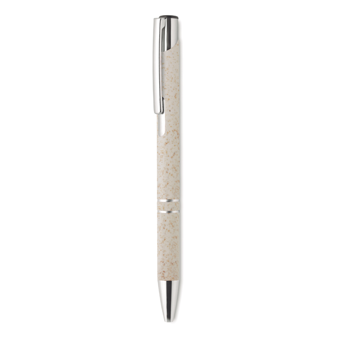 - Bolígrafo pulsador de paja de trigo con acabados plateados