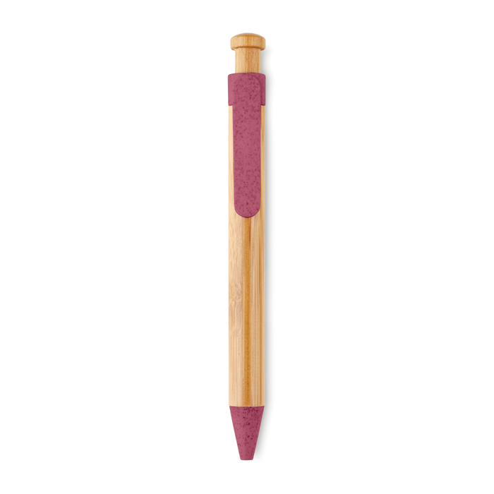 Bolígrafo de bambú con clips de colores para destacar tu marca en eventos