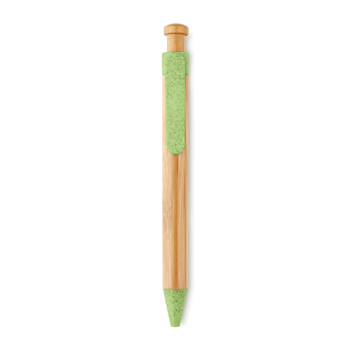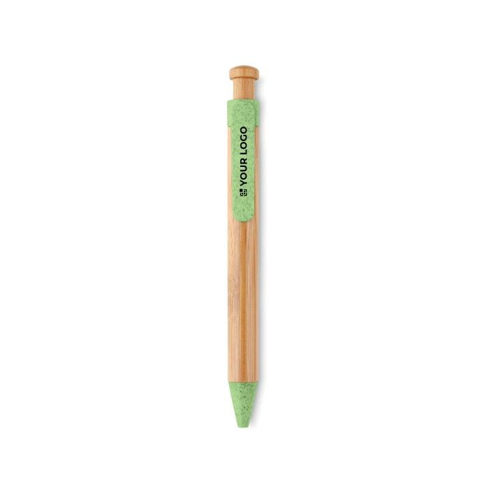 Utiliza un bolígrafo de bambú con tinta azul para transmitir los valores sostenibles de tu marca en cualquier evento corporativo. Este bolígrafo, personalizable con tu logotipo, es una herramienta que ofrece una escritura fluida y un mensaje claro de responsabilidad ambiental. Con un cuerpo de bambú y clips y punta de colores a juego, fabricados en paja de trigo 50 % y PP 50 %, refuerza tu imagen como una entidad consciente y comprometida. Al entregarlo a asistentes o clientes, es un recordatorio tangible de tus principios, fomentando la lealtad y el reconocimiento de marca en cada interacción profesional.