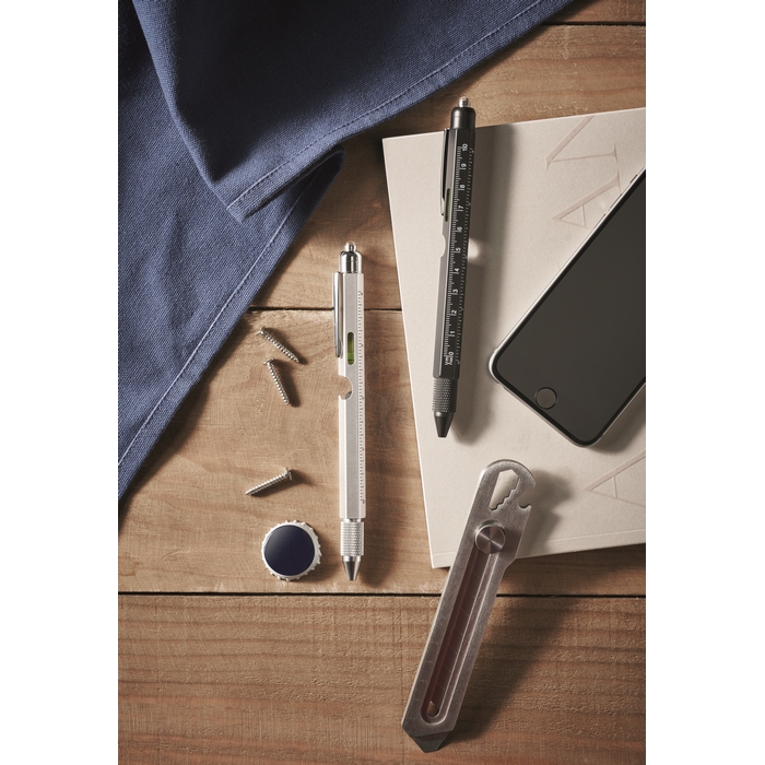 Bolígrafo personalizado de acero con miniherramientas tinta azul