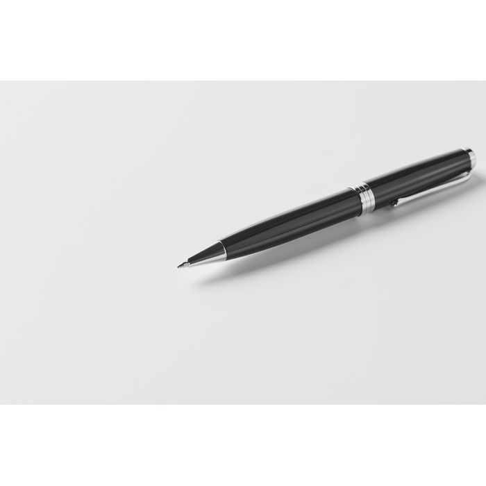 Bolígrafo fabricado con cuerpo de acero inoxidable reciclado, ideal para empresas que valoran la sostenibilidad. La tinta azul garantiza una escritura fluida y profesional, adecuada para cualquier entorno de trabajo. Presentado en un elegante estuche, este bolígrafo no solo es funcional, sino también un detalle sofisticado para reforzar relaciones con clientes y colaboradores. Su diseño con pulsador facilita el uso diario, convirtiéndolo en una herramienta práctica para reuniones y eventos corporativos. Considera personalizarlo con el logo de tu empresa para aumentar la visibilidad de tu marca en conferencias y ferias.