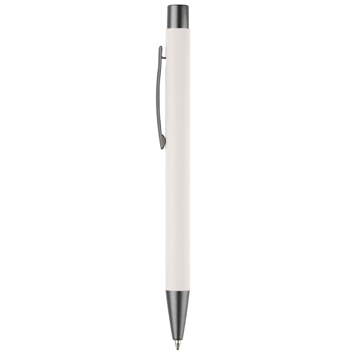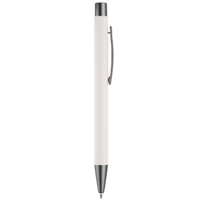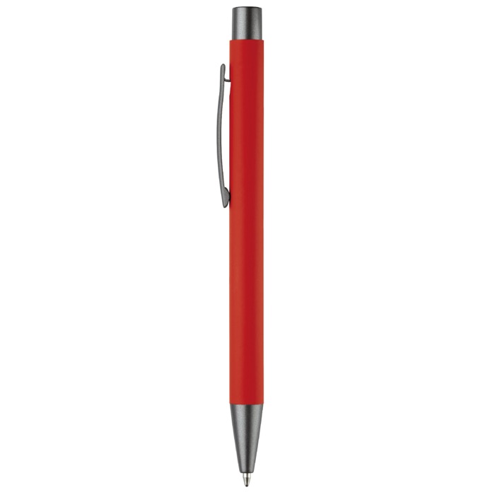 - Bolígrafo de aluminio con acabado soft-touch y clip metálico sólido