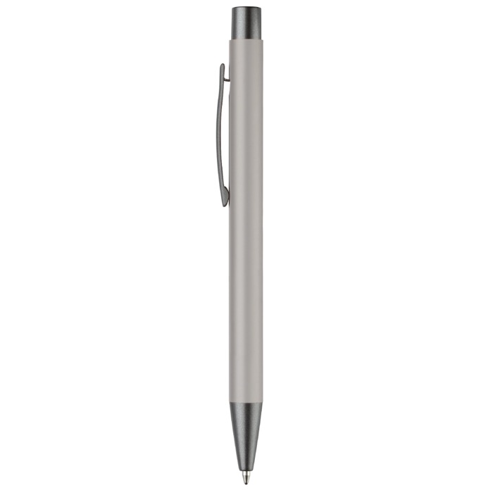 Bolígrafo de aluminio con acabado soft-touch, diseñado para ofrecer una experiencia de escritura cómoda y fluida. Equipado con un sólido clip metálico, es ideal para sujetarlo de manera segura en carpetas o bolsillos. La tinta de color azul proporciona un trazo claro y profesional, adecuado para cualquier entorno de trabajo. Su diseño elegante y funcional lo convierte en una excelente opción para personalizar con la identidad corporativa de tu empresa. Perfecto para distribuir entre empleados o como obsequio en eventos corporativos, reforzando la presencia de marca de manera práctica y efectiva.