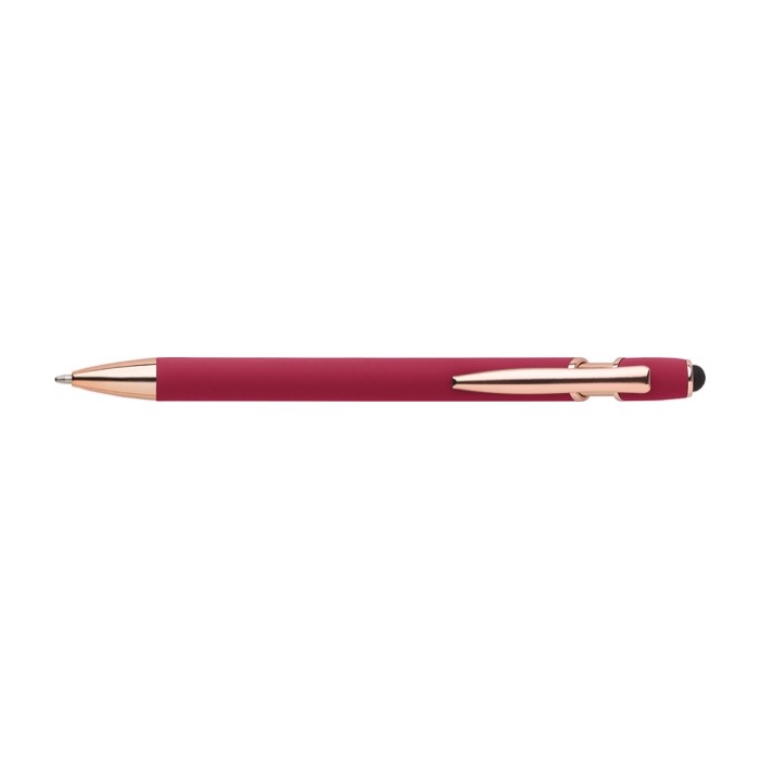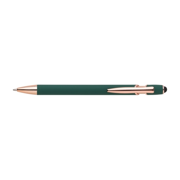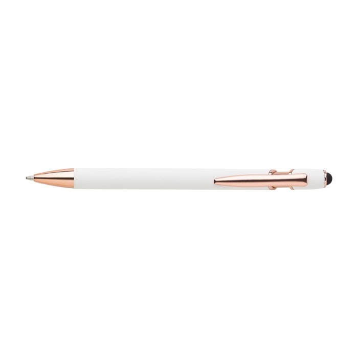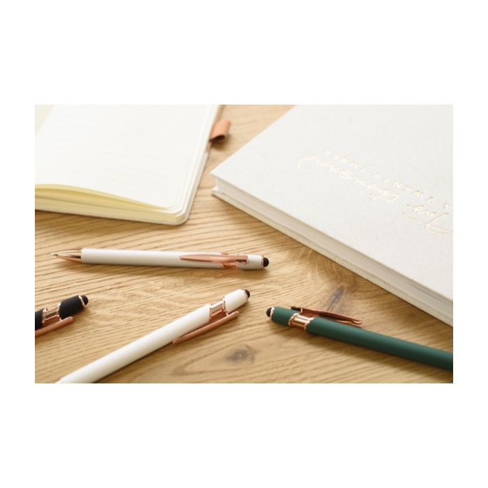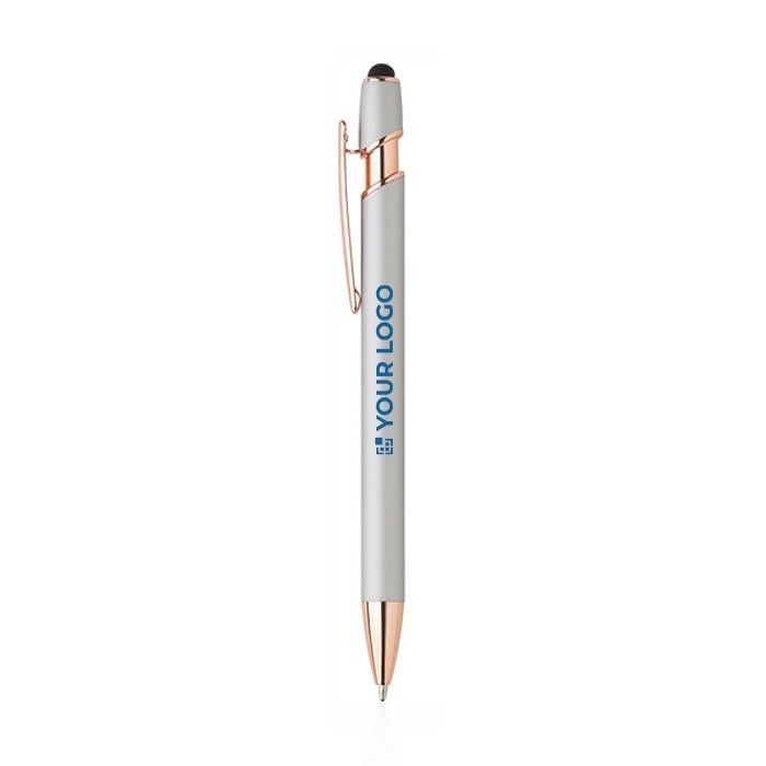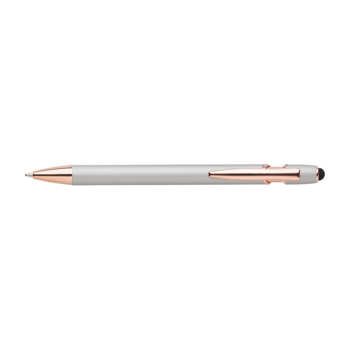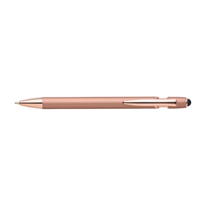 Bolígrafo de aluminio con detalles en oro rosa y puntero táctil para impresionar en cada trazo