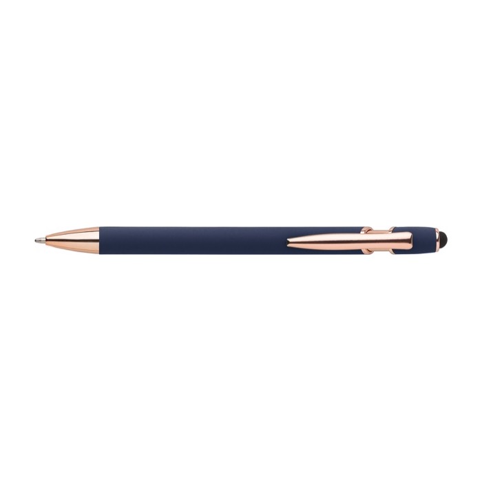 Bolígrafo metálico con detalles en oro rosa táctil de tinta azul