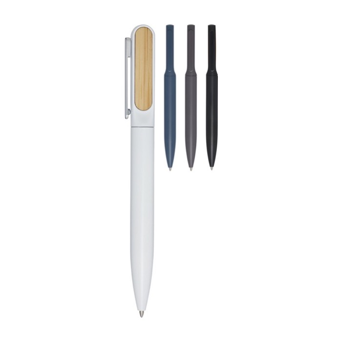 - Bolígrafo con cuerpo de plástico reciclado y bambú
